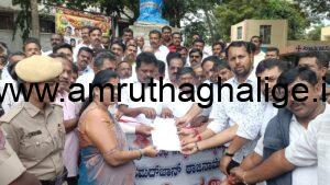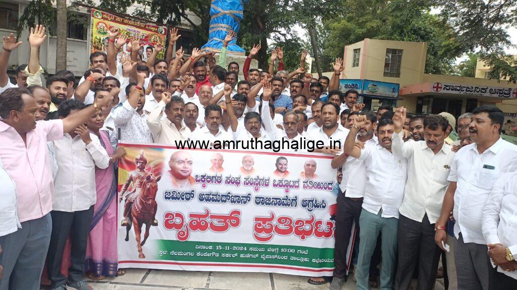 ಕುಣಿಗಲ್ ಬೈಪಾಸ್ ಬಳಿ ಮಾನವ ಸರಪಳಿ ಮಾಡಿ ಜಮೀರ್ ವಿರುದ್ಧ ಆಕ್ರೋಶ ವ್ಯಕ್ತಪಡಿಸಿದರು.