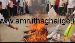 ನೆಲಮಂಗಲದ ಕುಣಿಗಲ್ ಬೈಪಾಸ್ ನಲ್ಲಿ ಸೇರಿದ ನೂರಾರು ಒಕ್ಕಲಿಗ ಸಮುದಾಯದ ಮುಖಂಡರು ಮಾಜಿ ಪ್ರಧಾನಿ ದೇವೆಗೌಡ ಹಾಗೂ ಕುಮಾರಸ್ವಾಮಿ ವಿರುದ್ದ ಅವಹೇಳನಕಾರಿ ಪದ ಬಳಕೆ ಹಿನ್ನೆಲೆ ಆಕ್ರೋಶ ವ್ಯಕ್ತಪಡಿಸಿ ಜಮೀರ್ ಅಹಮದ್ ಕೂಡಲೇ ರಾಜೀನಾಮೆ ನೀಡಬೇಕು ಎಂದು ಆಗ್ರಹಿಸಿ ಜಮೀರ್ ಪ್ರತಿಕೃತಿದಹಿಸಿದರು