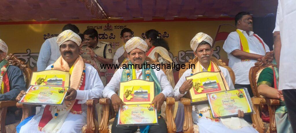 ದಿನಾಂಕ,1/11/2024ಉಡುಪಿ, ಅಜ್ಜರಕಾಡು ಮಹಾತ್ಮಾಗಾಂಧಿ ಜಿಲ್ಲಾ ಕ್ರೀಡಾಂಗಣದಲ್ಲಿ, ಜಿಲ್ಲಾಧಿಕಾರಿ ಮತ್ತು, ಉಸ್ತುವಾರಿ ಸಚಿವರ, ಶ್ರೀಮತಿ ಲಕ್ಷ್ಮಿ ಹೆಬ್ಬಾಳ್ಕರ್ ಹಾಗೂ ಜಿಲ್ಲಾ ವಿವಿಧ ಉನ್ನತ ಮಟ್ಟದ ಅಧಿಕಾರಿಗಳು ಸಮ್ಮುಖ ದಲ್ಲಿ ಪ್ರಶಸ್ತಿ ಪ್ರಧಾನ ಮಾಡಲಾಯಿತು. ಇವರ ಸಾಮಾಜಿಕ ಸೇವೆಗೆ ರಾಜ್ಯೋತ್ಸವ ಪ್ರಶಸ್ತಿ ಒಲಿದುಕೊಂಡಿರುವುದು ಸಂತಸ ತಂದಿದೆ. ಇನ್ನಷ್ಟು ಪ್ರಶಸ್ತಿಗಳು ಇವರ ಮುಡಿಗೆ ಒಲಿದು ಬರಲಿ ಎನ್ನುವುದೇ ಪತ್ರಿಕೆಯ ಆಶಯ.